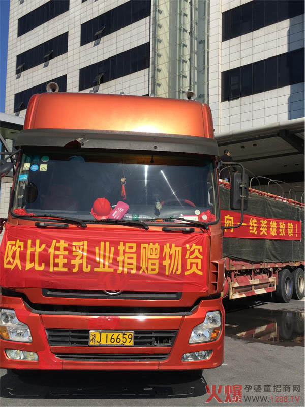 16日下午,在经过了近2个小时的装箱码货之后,满载着300万元羊滋滋、欧素力、可唯安爱心奶粉的货车缓缓驶出欧比佳乳业长沙乳粉工厂,每一箱爱心奶粉,都凝结着欧比佳乳业人的祈祷和祝福,欧比佳乳业也希冀以自己的实际行动,为抗击疫情略尽绵薄之力。