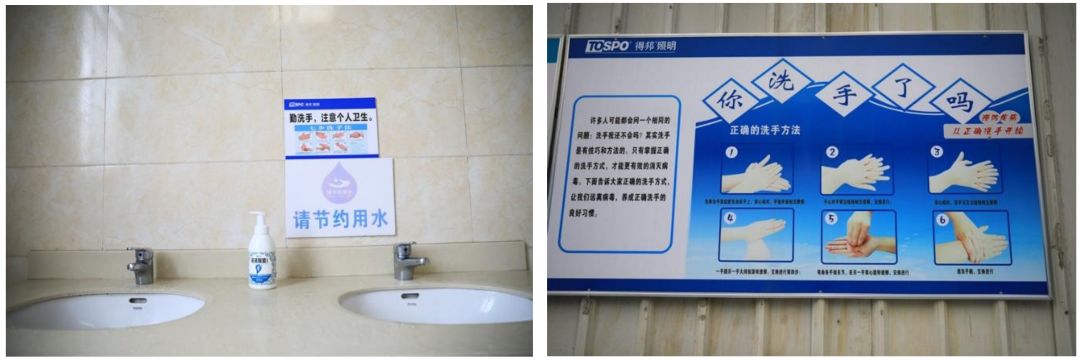 洗手区域配备消毒洗手液,张贴七步洗手法