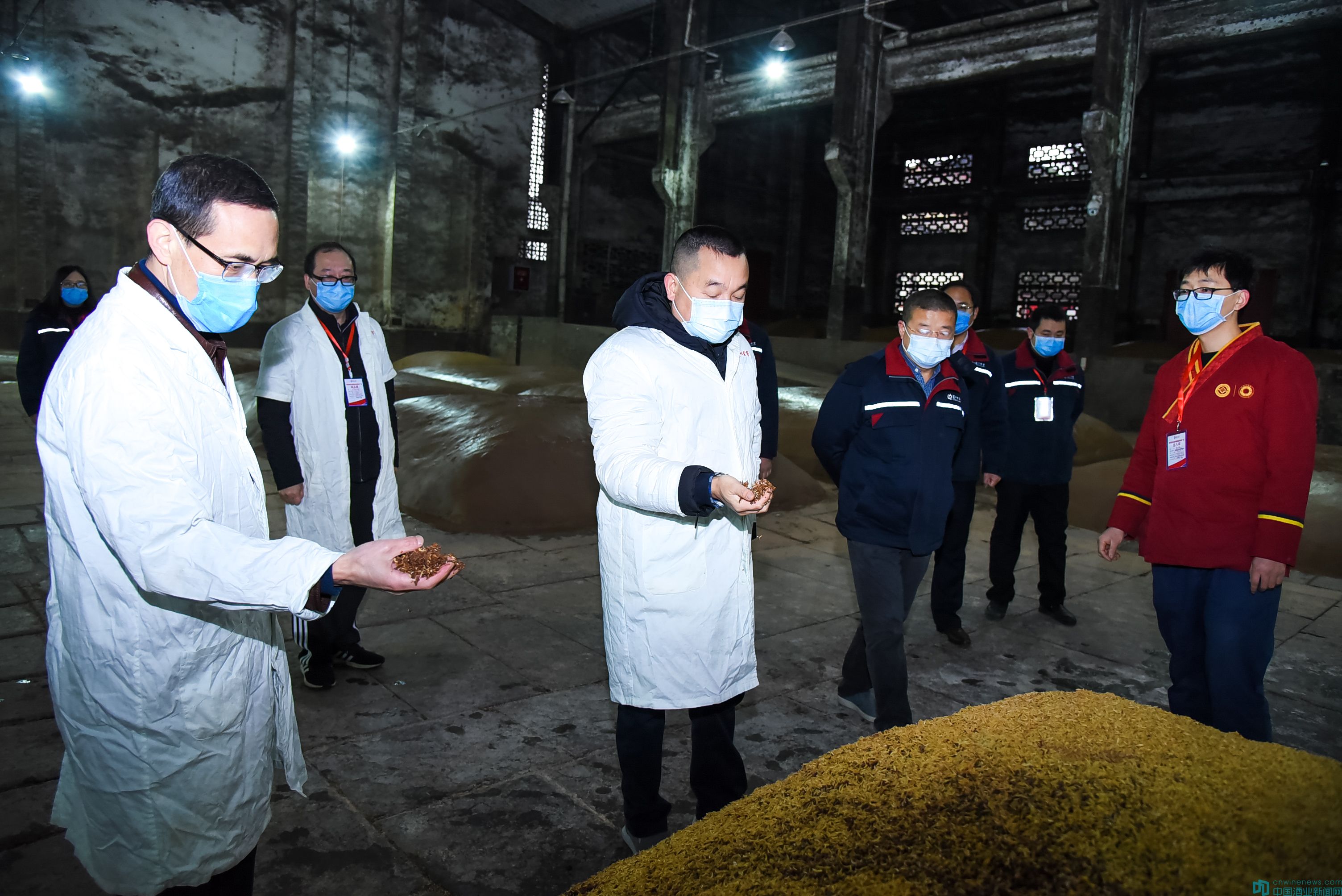 一大早,戴着口罩的酿酒工人们间隔有序,排队测体温,用75%vol酒精消毒……他们陆续进入生产现场,一切周密细致,井然有序。