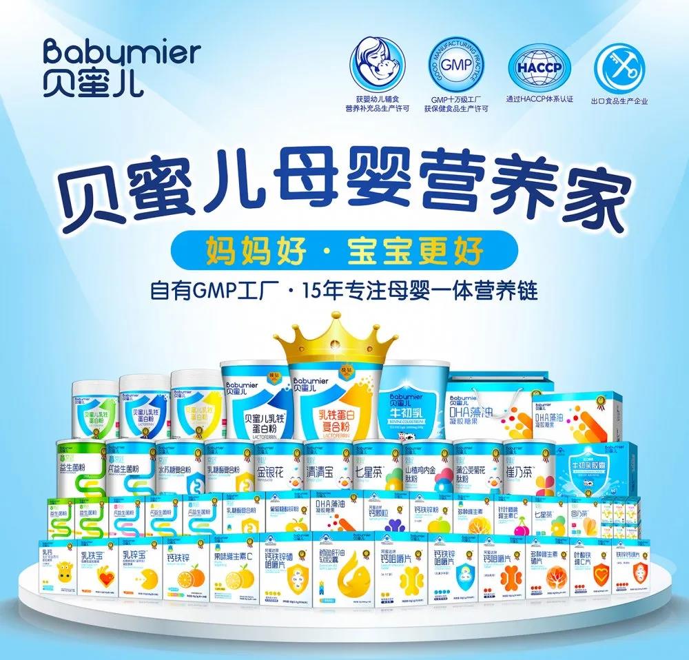 贝蜜儿品牌始于2005年,旗下GMP工厂是专业的营养保健食品、功能食品、婴幼儿特殊膳食生产企业、出口食品生产企业、并通过了CQC(中国质量认证中心)的HACCP质量体系认证。15年来,贝蜜儿专注打造母婴一体营养链,赢得了千万妈妈的信赖。贝蜜儿母婴产品已覆盖中国578个城市的近30000家母婴店和药店,与石药集团、修正药业、北京爱亲、长春米氏、红孩子、爱婴岛、海拍客等大型上市药企和连锁平台达成了战略合作伙伴关系,在天猫、京东、苏宁易购等平台均已成为行业TOP10商家。