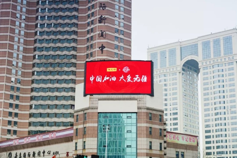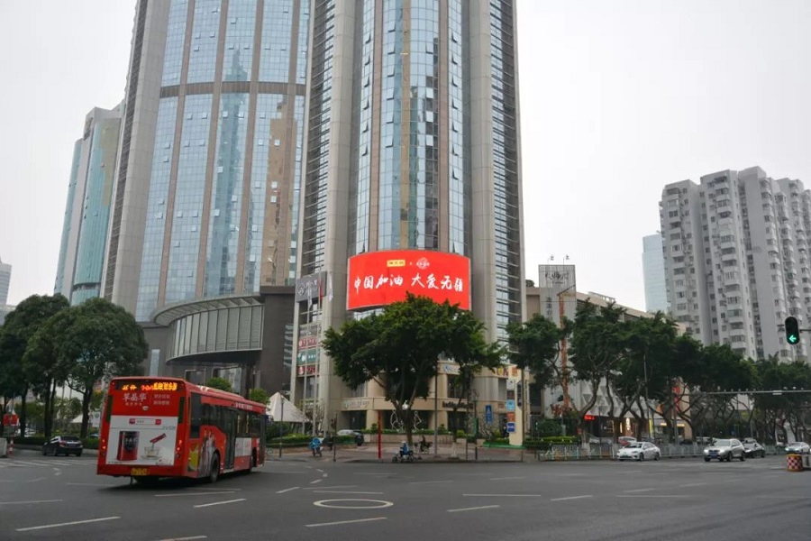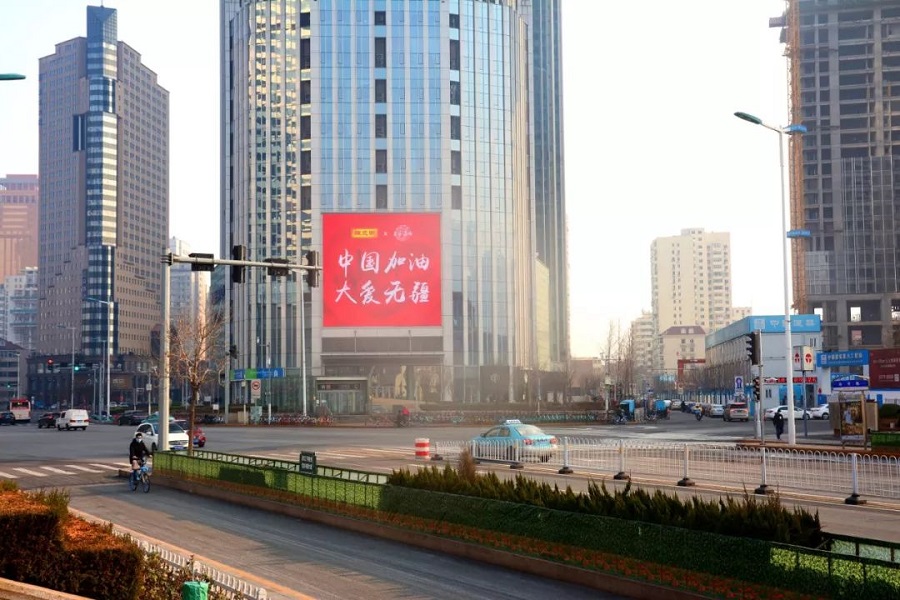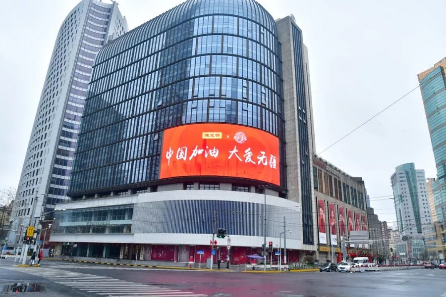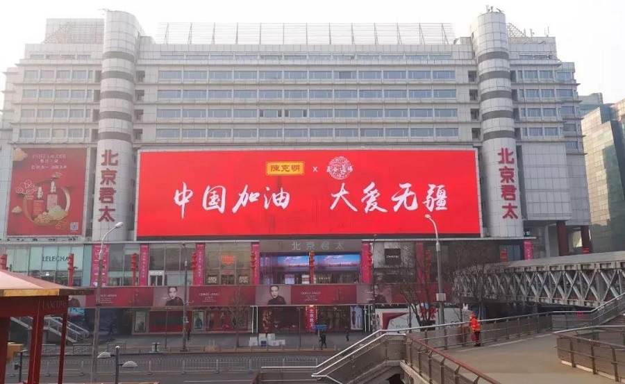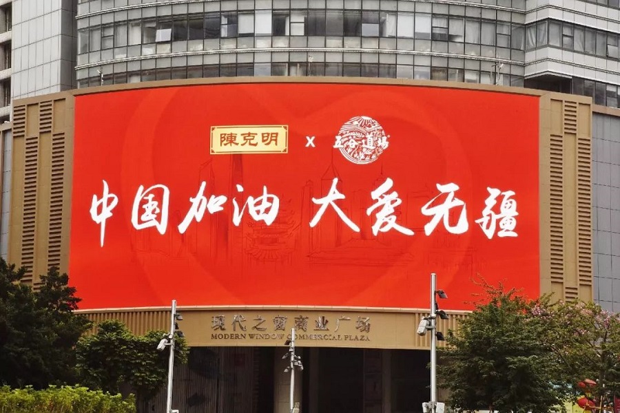 “中国加油,大爱无疆”,克明面业点亮7城公益大屏为抗疫加油!
