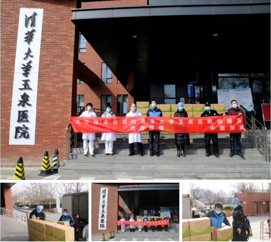 △绿伞向清华大学玉泉医院捐赠消杀产品