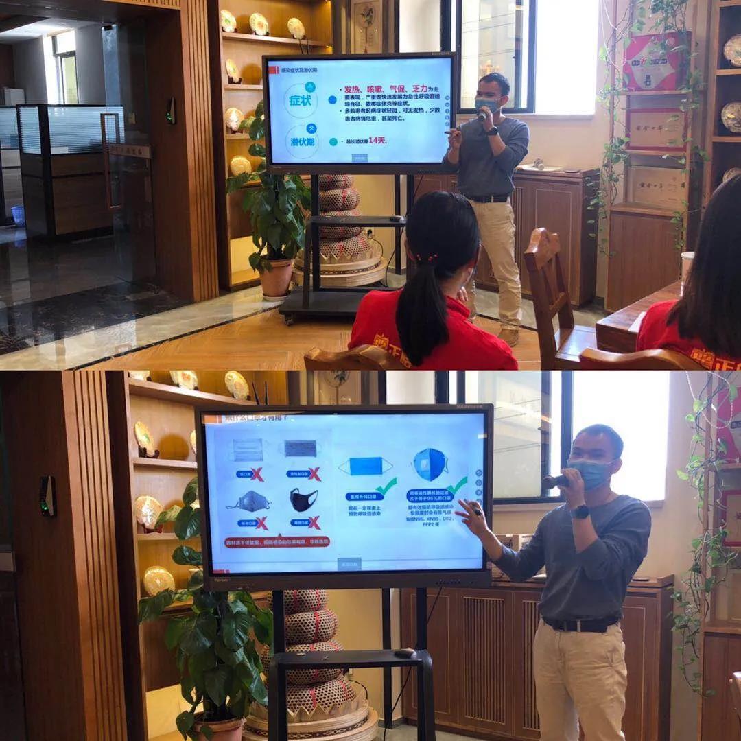 公司遵循政府有关复工复产指引规定,购置必备的口罩、酒精、消毒液等防护物资和体温检测仪,做到有序复工。
