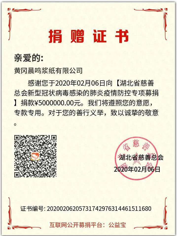 【支援抗疫彰显企业担当 爱心捐款践行企业初心】晨鸣集团捐款捐物1300余万元抗击疫情
