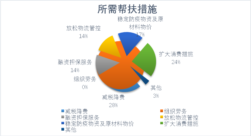 全国文教办公用品专业市场复工复产急需政策和措施依次为:减税降费、扩大消费措施、稳定防疫物资及原材料物价、融资担保服务、放松物流管控、其他措施,如减免房租、补充专业人才等。