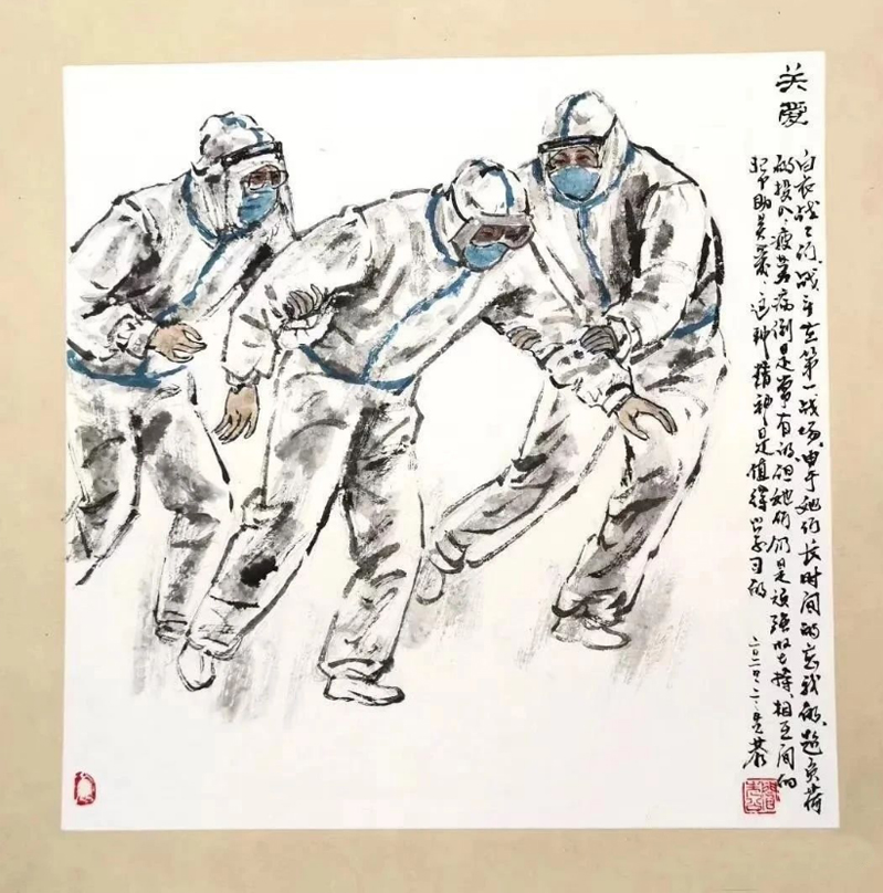 国画《关爱》