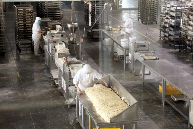 到了生产车间,记者看到车间正在井然有序的进行生产作业,工人们仍在忙碌的进行着产品制作,蛋糕、面包的生产并没有因为疫情受到影响。一个个精心制作出的产品在经过质检后被送往了分派区等待物流运出。唯一与以往不同的是,企业加强了对生产设施设备、加工场所等重点部位的清洗消毒的力度。