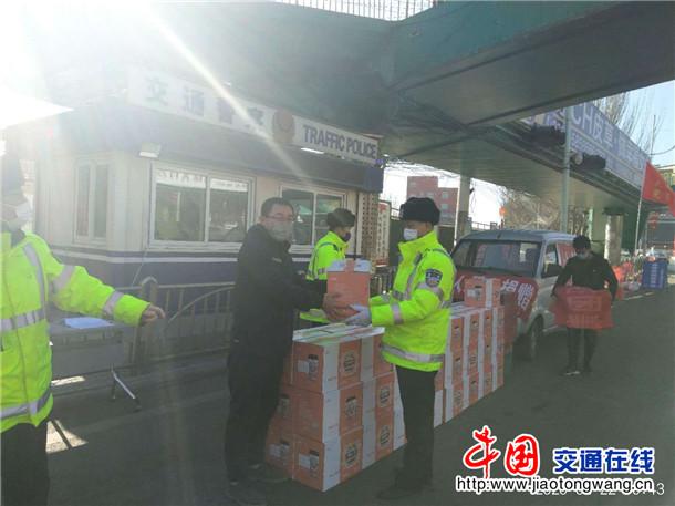2月22日,爱心企业小洋人集团向山西大同交警五大队疫情防控一线执勤民警捐赠了牛奶、矿泉水等慰问物品。