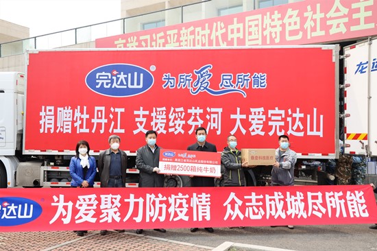 此次新冠疫情爆发后,完达山乳业心系抗疫一线医护人员安危,早在疫情最早爆发期完达山乳业就将完达山“牛初乳粉”等具有提高人体免疫力等作用的高端乳制品送到一线医护人员手中。25000箱总价值137.5万元的抗“疫”牛奶直发湖北孝感,定点捐赠孝感汉川、应城、安陆三支黑龙江医疗队伍,供抗疫前线工作指挥部分配使用。为助力黑龙江省一线工作人员抗击疫情,完达山乳业通过省疾病预防中心先后向哈尔滨市南岗区城市管理局、黑龙江省传染病防治院、黑龙江省疾病预防控制中心、哈尔滨市道外区综合执法大队、南岗区疾病预防控制中心、医大一院、群力医院、黑龙江省农垦总医院等抗疫一线单位送去万余箱乳品物资。