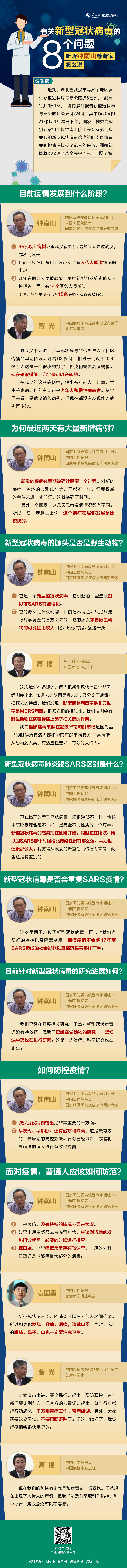 有关新型冠状病毒的8个问题 听听钟南山等专家怎么说