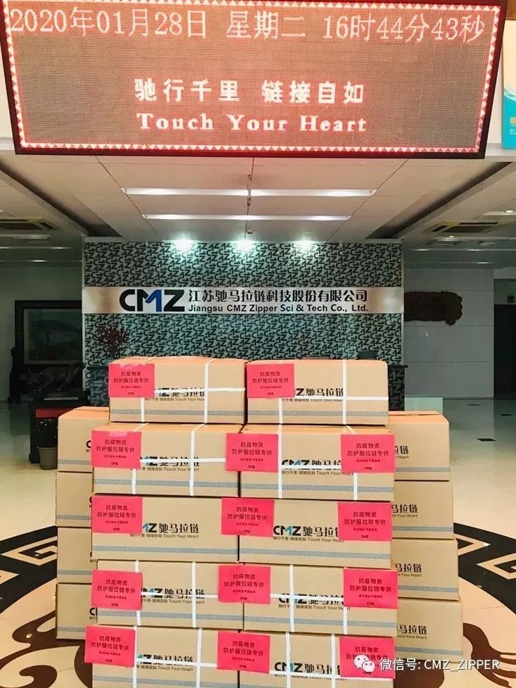 1月27日(年初三)晚,江苏驰马拉链科技股份有限公司接到30000条防护服拉链订单,公司马上组织突击生产小组,紧急通知在家休假的相关工人上班。为了抗击疫情,员工没有一人有怨言,立即赶到公司连夜赶制防护服拉链。1月28日,在突击小组的努力下,30000条防护服拉链顺利装箱,运往防护服生产厂家。