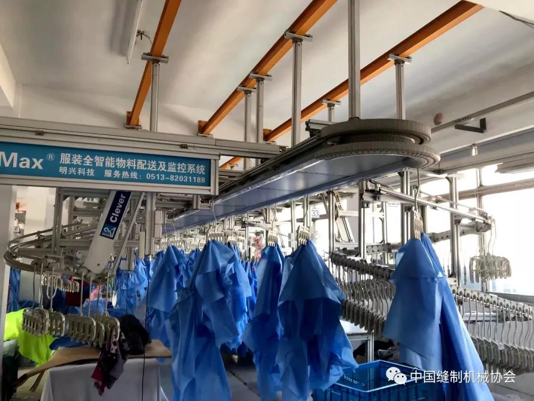 2月1日,南通明兴科技开发有限公司,借助自身在吊挂产品层面的优势,上线防护服、隔离服生产线,并迅速组织人员,加班加点进行赶制生产。