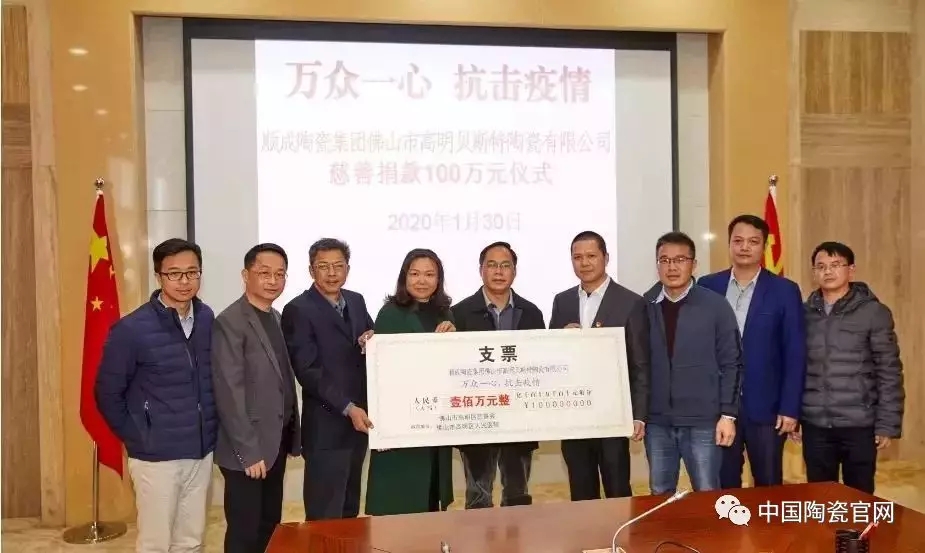 1月30日,顺成陶瓷集团决定捐赠100万元,用于支持高明区针对新型冠状病毒感染的肺炎疫情防疫防控工作,以实际行动助力疫情防控。据悉,该笔资金将分两个用途,一半用于支援高明区人民医院防疫防控工作,一半用于购买防控物资。同时,顺成将密切关注疫情进展,适时提供力所能及的帮助。
