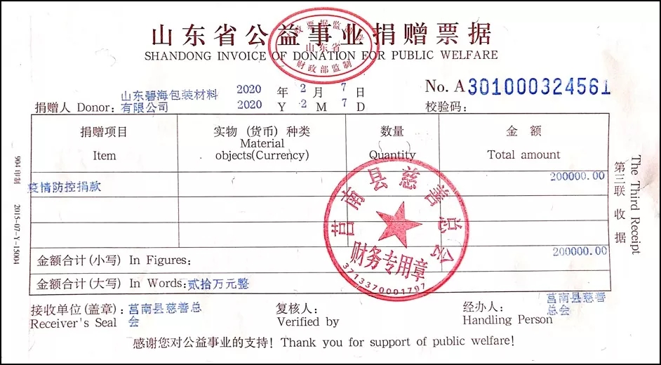 在这次抗击疫情的行动中上海威士机械有限公司向湖北省服装商会捐款3000元,集中购买物资转交武汉慈善总会和红十字会。