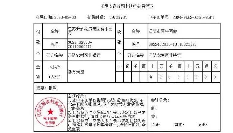 2020年2月3日,升辉集团向江阴市慈善基金会捐款人民币45万元,所捐款项将用于抗击新型冠状病毒肺炎疫情。