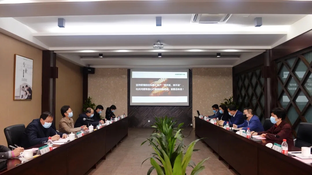 座谈会上,公司总裁王米成就鸿雁复工复产、疫情防控工作两大方面作出了具体汇报。他介绍,受园区辖区政府批准,鸿雁五常园区、青山湖园区均已于2月15日起正式复工,通过成立疫情防控领导小组、加强员工健康监测、工作场所消毒防控、包车员工返杭等措施,目前公司在杭员工到岗率已达80.3%,鸿雁杭州五常园区开工率达到50%以上,预计三月中旬可逐步恢复正常。