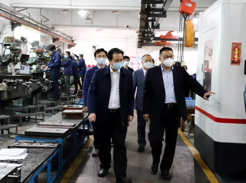 区领导一行首先参观了康铭盛产品室,康铭离网产品、全光谱护眼台灯,品种众多,款式新颖,功能多样受到大家的一致好评。然后视察了模具车间,车间全部到岗员工都以饱满的精神状态,争分夺秒投入到生产中。车间根据实际到岗人员,合理配套排岗开线生产,全力确保货期紧急订单的生产推进,满足客户需求。保质提效,复工促产,人人有责。每个车间、每个岗位员工都不遗余力,全力以赴,保质提效推进每日生产任务。