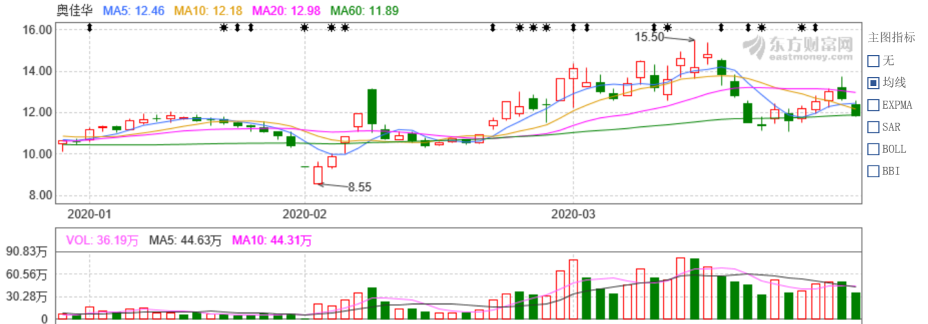 根据东方财富网信息,九家上市公司近3个月股价变化均线图如下: