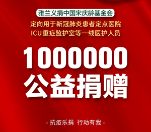 为携手打赢新冠肺炎疫情防控阻击战,雅兰集团通过中国宋庆龄基金会无偿捐赠100万元人民币,用于支持宋庆龄基金会开展新冠肺炎患者定点接收医院ICU重症监护室等重点科室一线医护人员关爱的公益项目。 详细