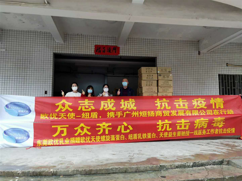 东莞欧优乳业心系新型冠状病毒感染的肺炎疫情,时刻在行动。在国家发布应急响应之后,东莞欧优乳业竭尽所能为疫情控制贡献力量。疫情牵动人心,爱心凝聚力量。2月6日,东莞欧优乳业紧急向东莞一线医护人员捐赠首批价值百万元的物资,包括欧优天使螺旋藻蛋白、NEWMUK纽盾乳铁蛋白、巴比伦益生菌等营养补充剂,为奋战在疫情一线的医护人员的免疫力加油打气。 详细