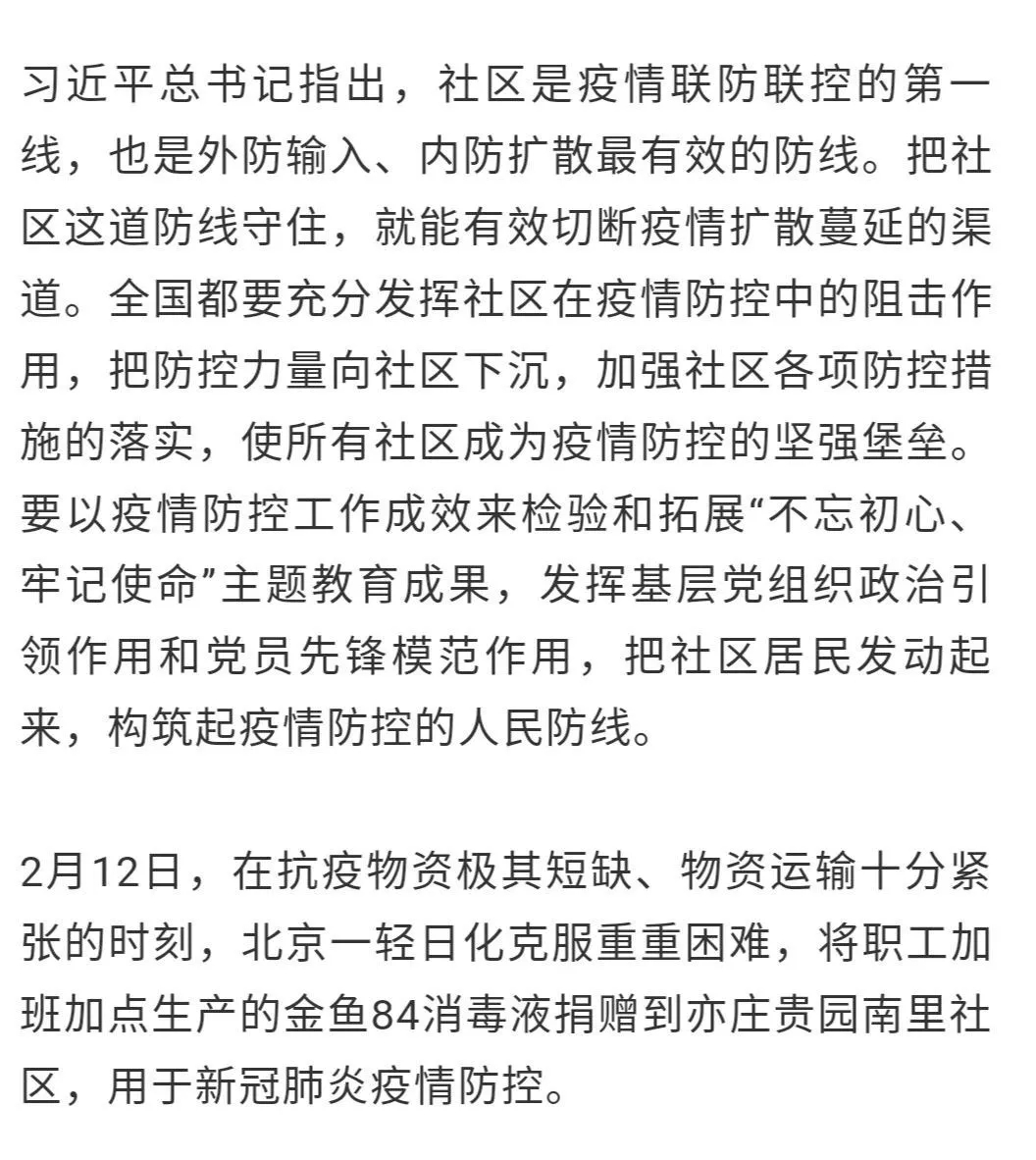 北京一轻日化:"金鱼"消毒液捐赠社区防控一线