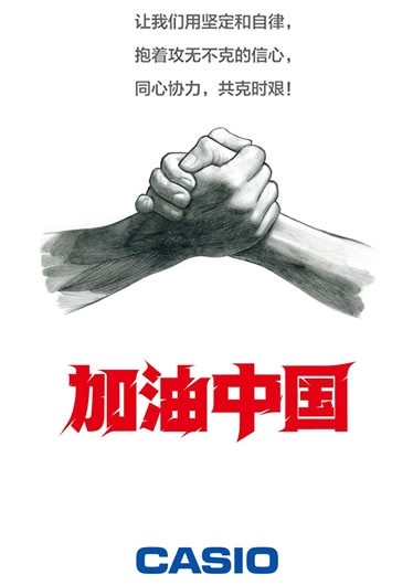 卡西欧员工向日夜奋战在一线的医护人员以及工作人员致以最崇高的敬意!并向所有被感染人员表示最诚挚的慰问!