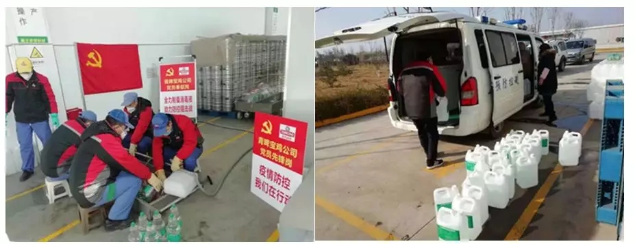 面对当前疫情防控的严峻形势,宝鸡公司广大党员干部积极响应公司党委号召,对公司现有设备实施技术改造,加班加点生产防控疫情急需的次氯酸消毒剂。截至目前,宝鸡公司已生产并无偿提供次氯酸消毒剂共计22吨。这些消毒剂一部分由宝鸡市及陈仓区疾控中心统一调配至市区各医院、防疫机构使用,另一部分捐赠给了市、区部分企事业单位、村组和社区,为打赢疫情防控阻击战贡献青啤力量。面对疫情,宝鸡公司物业办人员主动靠前,扛起疫情防控的艰巨重任。物业办党支部发出党员干部群众志愿者倡议书,要求辖区党员做到三个带头:带头做好预防、带头劝导到位、带头守好家园,督促党员成为疫情防控的宣传员、监督员、战斗员。