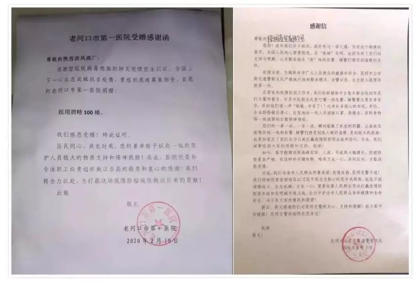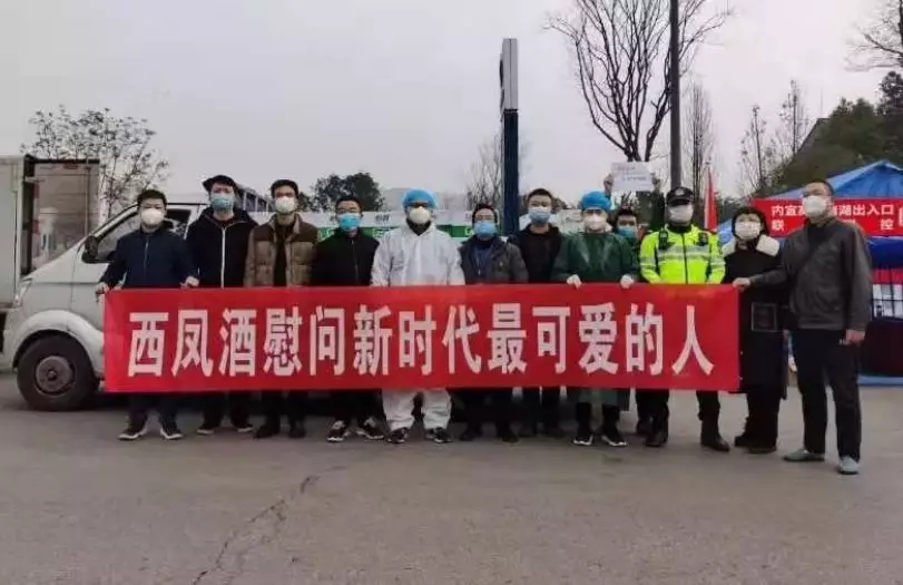 2020年2月12日起,西凤酒首批慰问物资已安全送达各抗疫一线,公司联合全国300多个城市经销商,齐心协力为抗疫定点医院、公安局、交警队、环卫等一线服务部门送去慰问物资。本次慰问活动以“举国聚力战疫、西凤同心共赢,慰问新时代最可爱的人”为主题,投入上千万的资金,并且由分公司组织,与经销商共同带领团队慰问,分公司在当地的业务人员全面配合。