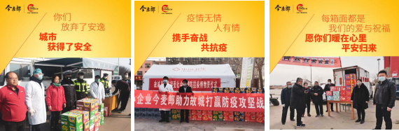 疫情发生后,今麦郎第一时间组织应急物资(方便面、饮用水、面粉)的生产,积极响应国家市场监督管理总局号召,践行“三保”行动,同时组织在全国各地分子公司向当地捐赠应急物资,支持各地抗击疫情。
