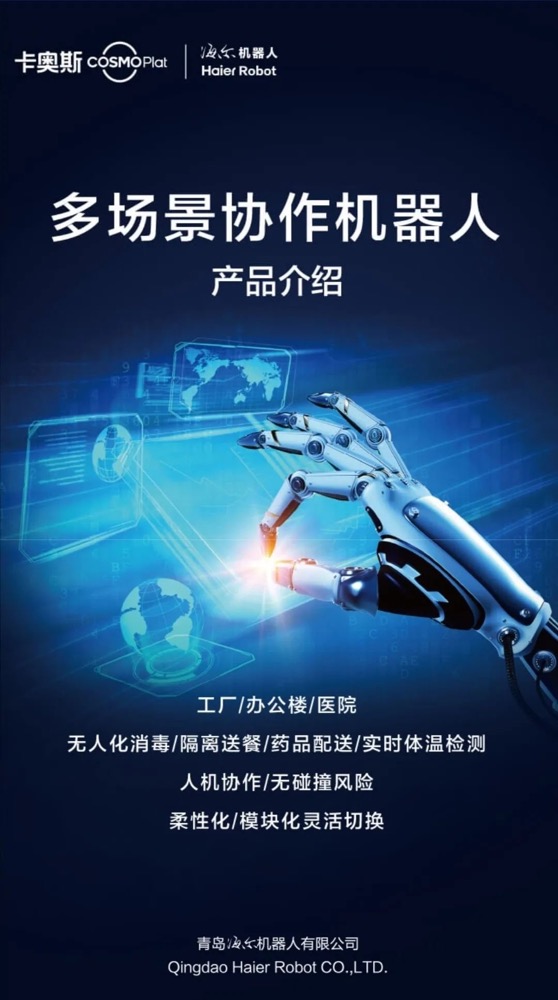 卡奥斯COSMOPlat智能物流配送车、多场景协作机器人等产品可满足企业在疫情期间不同场景下的无接触性需求及协同服务。