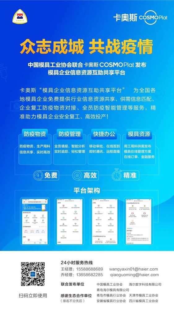 该平台全称为“模具企业信息资源互助共享平台”,由中国模具工业协会、卡奥斯COSMOPlat联合发布。