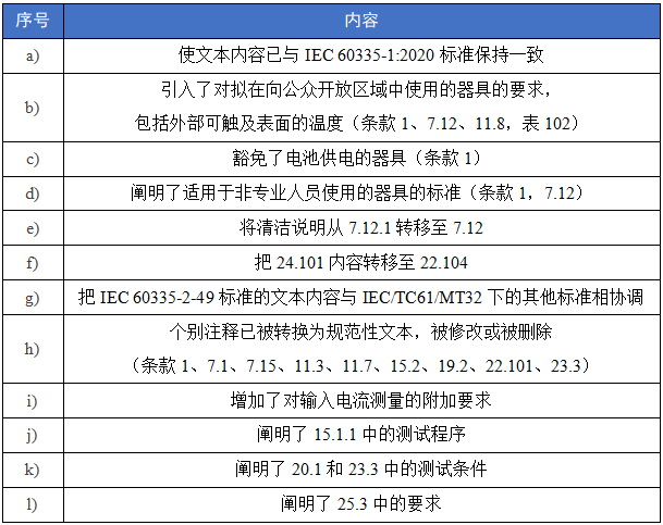 该第五版标准IEC 60335-2-49:2021构成了技术修订,取消并替代了2002年第四版标准IEC 60335-2-49:2002,修订版标准IEC 60335-2-49:2002/AMD1:2008和修订版标准IEC 60335-2-49:2002/AMD2:2017。与上一版标准相比,该版本标准包括以下重大技术变更: