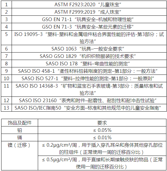 2022年9月23日,沙特阿拉伯发布饰品及配件技术法规,以规范这些产品的安全。新法规包括以下重要条款: