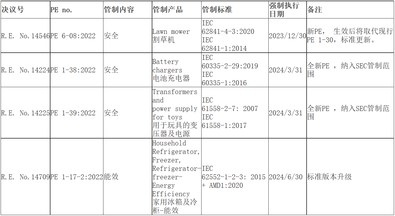 其中包括部分最新纳入管制清单的产品,也涉及部分产品的测试标准更新或版本升级。
