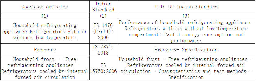2022年12月14日,印度标准局(BIS)发布公告,制冷设备强制安规ISI认证的实施时间再次推迟实施,下列产品的强制日期推迟到2024年1月1日。