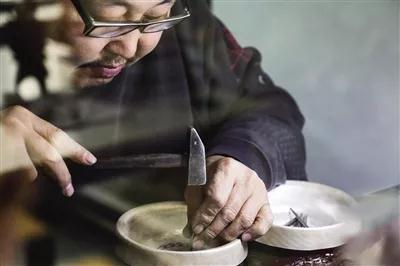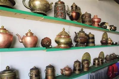 上面镶嵌着民族特色花纹的蒙古族铜制品,看似古老而又新潮,而这些花纹需要手工匠人一点点的打磨雕刻,加之铜制品硬度较高,想要把它们塑造成圆鼓鼓的茶壶、奶壶,绝非易事。