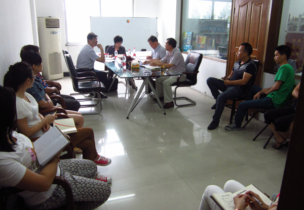 2014年6月22日—23日中国制笔协会组成中国制笔行业专家组一行三人到浙江光辉文教用品有限公司对其申请所生产的考试专用2B铅笔进行现场考评,光辉文教副总经理王敏先及各有关部门负责人参加了考评会。