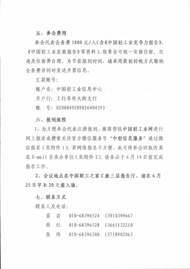关于举办“强化科技创新、服务美好生活”中国轻工业百强企业高峰论坛的通知