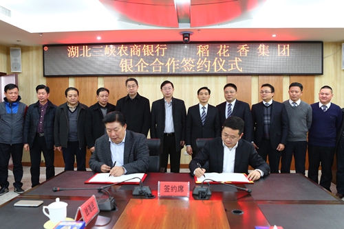 1月18日上午,湖北三峡农村商业银行股份有限公司董事长王服文与稻花香集团党委书记、董事长蔡宏柱在稻花香集团签订银企战略合作协议,未来3年向稻花香集团综合授信10亿元,进一步深化银企合作,实现合作共赢。