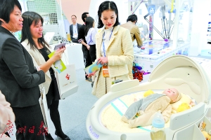 中国国际科技合作周东莞举行 智能婴儿车自带哄娃技能