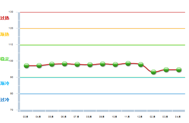 2014年4月中轻五金行业景气指数继续保持在“稳定”区间内运行,与2014年3月的走势基本持平,仍然低于2013年全年的平均水平。