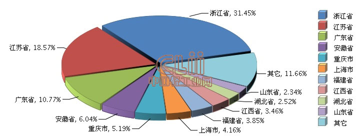 从地区分布看,浙江、江苏和广东照明行业累计利息支出占到了全国的前三位。