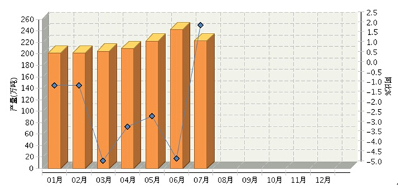 2014年1~7月我国乳制品产量累计同比下降1.13%