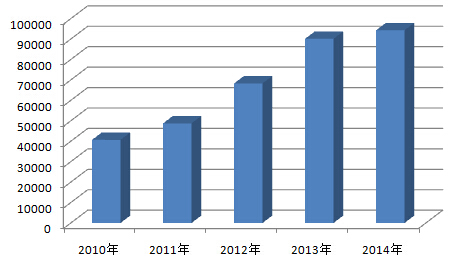 近几年,我国五金行业申请的专利数逐年递增,仅5年就从2010年的40696件增长至2014年的94301件,翻了一倍多。行业科技创新水平总体上也随之有所提高。