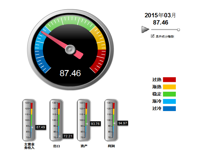 从轻工业行业运行监测预警系统上看,饮料工业运行的综合景气指数显示:饮料行业今年以来进入渐冷区间,一直保持平稳运行,指数处于87.46的稳定适度水平。4个分项景气指数上,除饮料出口景气指数略显异常外,收入、资产、利润景气指数都处于稳定良好的状态。