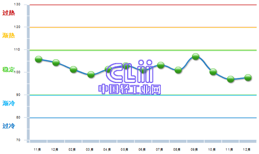 图1 2013年11月~2014年12月家具行业出口景气指数变化态势