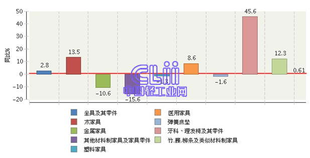 图5 2014年家具行业主要商品累计出口值增速情况