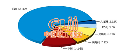 图1 2015年1~9月我国陶瓷砖累计出口额各大洲占比情况