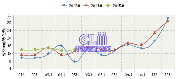 2015年全国家具行业月度应交增值税及同比