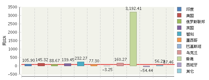 2016年1月~3月,河北玩具行业完成累计出口额同比增长87.46%。印度和美国占据了河北玩具出口份额的50%以上,其中对印度出口占出口总额的25.51%,同比增长105.9%对美国出口占出口总额的25.16%,同比增长145.32%。与2015年一季度河北玩具出口的负增长相比,今年河北玩具出口取得开门红。